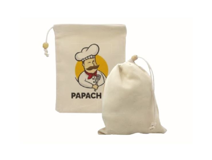 Bag with one side Drawstring and Wooden Beads Design. Can be used as a gift or goodie bag when combining products. Size: 190 x 245 mm