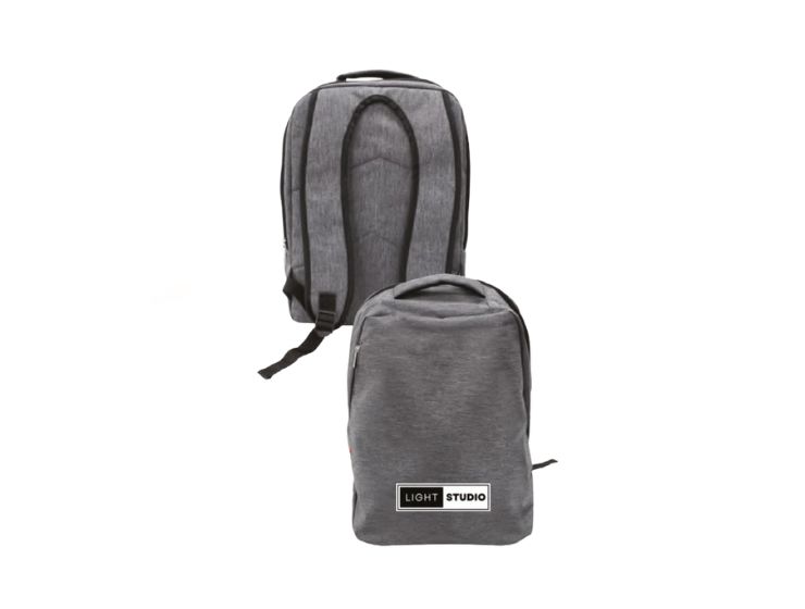 1 main zipper & 1 side zipper. Padded shoulder strap. Grey color exterior and black color interior. SKU: SB-04-GY Dimension: 400 x 450 x 170 mm Printing: Screen Printing, Heattransfer