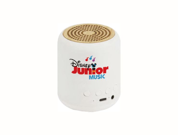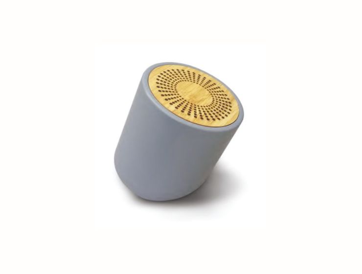 5.0 Bluetooth speaker with bamboo topside design & black rubberized base. Multicolor LED light on the middle. 300 Mah Lithium-ion battery. SD card port & micro-usb charging port.