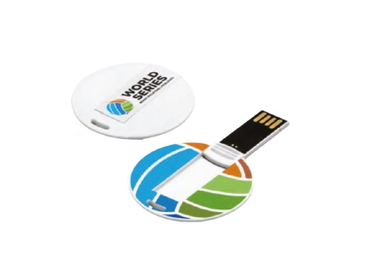 PVC Round Shaped Mini USB Flash Card. Slim and Portable design. Storage: 4GB, 8GB, 16GB, 32GB, 64GB. SKU: USB-56 Dimension: 40 x 40 mm Printing: Screen Printing, UV Printing