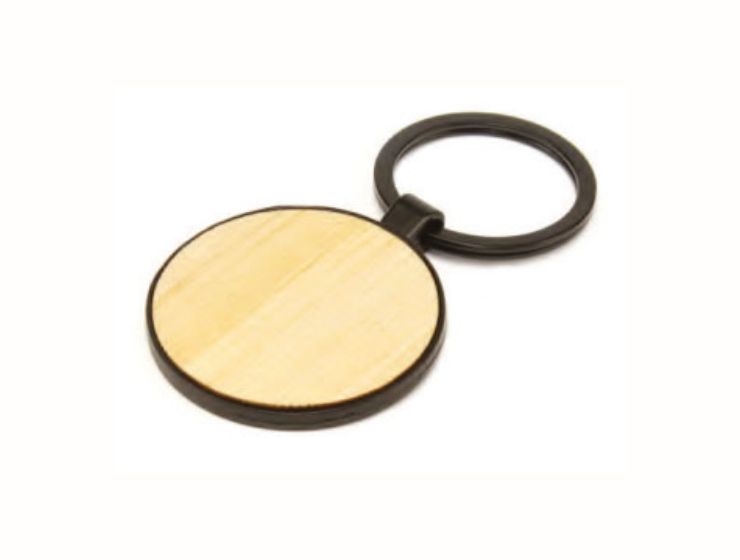 Round Black Metal Base Keychain with Bamboo. Packed in the polybag. SKU: KH-7-BM Size: 40 x 75 x 4 mm Printing: Screen Printing, Laser Engraving