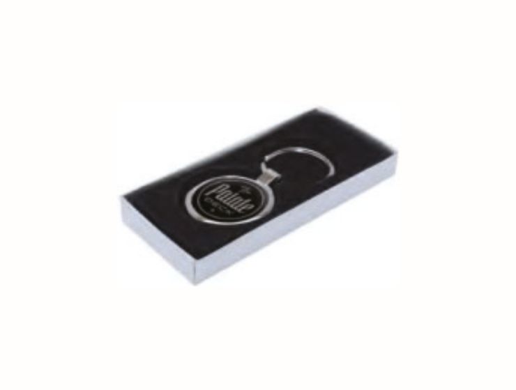 Oval Shaped Metal Keychain. 2 side printing area. SKU: 28 Size: 44 x 24 mm Printing: Digital Printing with Epoxy, Laser Markings