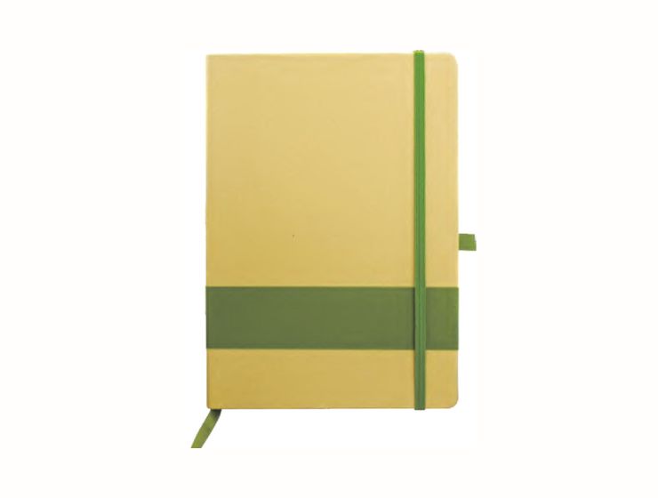 Appeel A5 PU Notebooks with Elastic Band and Pen holder. Sustainably made from Apple Waste. 96 sheets of cream ruled paper with info page, ribbon bookmark & back pocket. Dimension: A5 (135 x 213 x 15 mm)